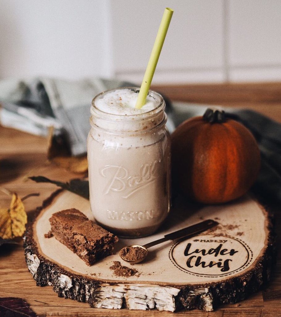 - Auf die selbe Menge Milch könnt ihr 1-2 EL Kürbispüree geben, je nachdem wie ausgeprägt ihr den Kürbisgeschmack möchtet.