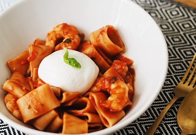 5 / 5 1 500g Pasta (nach eigenem Geschmack)250 Cherry-Tomaten1 große rote Zwiebel6 getrocknete Tomaten (in Öl eingelegt)100g Parmaschinken (in Scheiben)150g mini Mozzarella-Bällchen50g frischer Rucolaeine große Hand Basilukumblätter2EL Kapern (in Lake eingelegt)2-3EL guter Balsamico-Essig3EL Natives Olivenöl extraMeersalzfrisch gemahlener Pfefferfrisch geriebener Parmesan