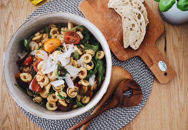 Sommerlicher Nudelsalat mit Tomaten und Rucola